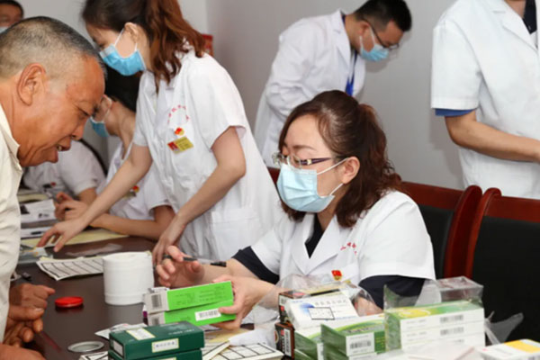活動現場,醫療團隊攜帶聽診器、血壓計、血糖儀等便攜醫用設備,為村民們檢查身體,并現場開具了處方,免費發放對癥藥品。藥師們熱情細致地為患者進行用藥教育,并對正在服用藥物的患者進行合理用藥調整;針對患有慢性疾病,長期服用多種藥物的患者,藥師們仔細為其檢查清理所服藥物,耐心交代藥物的用法、用量及注意事項。