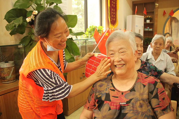 志愿者陪老人們共迎國慶佳節。大石壩街道供圖