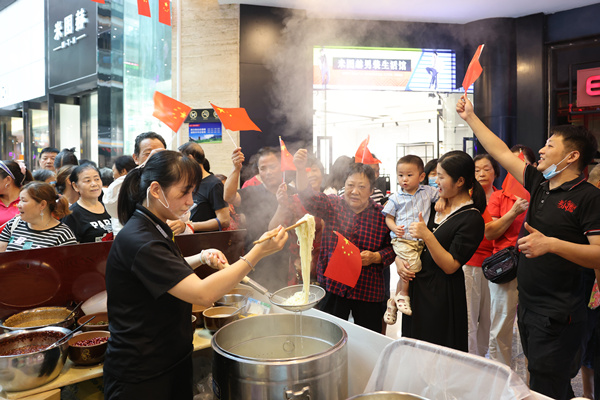 渝北區金港國際購物中心,市民品嘗“國慶面”。渝北區委宣傳部供圖