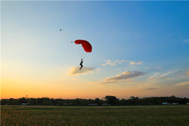 想體驗體驗腎上腺素飆升的快感嗎?位于梁平機場的重慶攀達高空跳傘梁平基地,自今年8月底試運行以來,已有50多名游客前來體驗高空雙人跳傘,成為梁平旅游打卡新項目。在專業教練陪同下,從4000米高空躍出機艙,感受以每秒約55米自由落體俯沖大地的刺激, 以及開傘后在高空盡覽梁平美景的震撼。