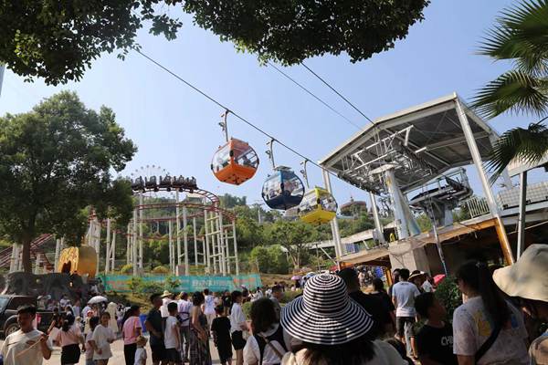據了解,國慶假期前,該景區對多項游樂設施進行升級,例如,將夏季水上樂園升級轉型為“美心水上樂園嘉年華”。園區內增設了滾筒步行球、碰碰船等各類親水項目,還有小擺錘、蹦床公園、5D影院、地網碰碰車、果蟲滑車、海洋大冒險等20多個游樂項目。同時,開放了位于石渝高速旁邊免費的“跨界豬”樂園,有萌萌噠的飛豬打卡點、多人秋千、滑梯、還配套有轉轉火鍋、碗碗茶餐飲配套服務,吸引了大批“親子游”人群。