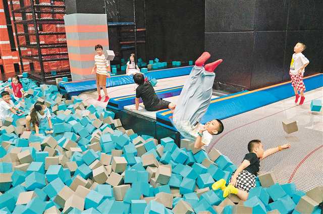 10月2日,兩江新區一奧天地,孩子們在大型蹦床公園JUMP 360內玩耍。記者 崔力 攝/視覺重慶