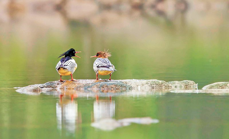 “鳥中大熊貓”中華秋沙鴨在江津區西湖鎮綦河邊覓食。(資料圖片)通訊員 李莉莉 瞿明斌 攝\視覺重慶