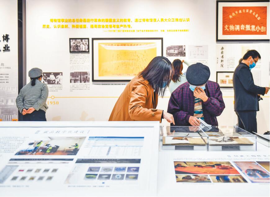 在展覽中,1951年8月制“西南博物院印”、重慶市博物館流動展覽“山城巨變”在解放碑展出盛況圖片、2005年重慶中國三峽博物館開館儀式簽名冊……一件件實物展品和歷史圖片,靜靜訴說著70年來,一座博物館和一座城市密不可分的關系。