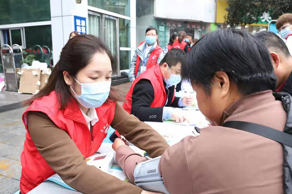 活動現場,志愿者們為居民測量血壓、血糖,詢問病史,為高血壓、糖尿病患者的用藥情況提供合理化的建議,飲食方面給予正確的指導,普及常見病、多發病的預防保健知識。志愿者們發放新冠疫苗第三劑接種宣傳單,讓廣大居民提高接種疫苗的思想意識,構建全民免疫屏障。