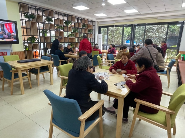 在這里,老人可參與閱讀、棋藝、書法、繪畫、茶文化等興趣娛樂活動,享受殘疾康復理療、老年人健康檢查、理發、足浴等服務,參加知識講座等。