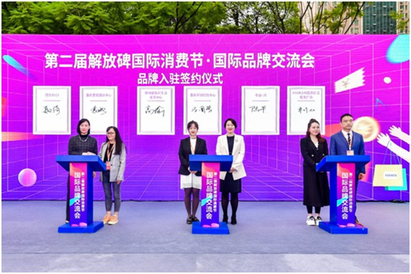 簽約環節,一批首店品牌集中簽約入駐渝中,為渝中區商業發展注入新的活力,HARMAY 話梅、半山·川入駐國泰廣場,舒納屋色彩生活美學中心與WFC牽手,洋碼頭跨境電商免稅直購店亮相解放碑,迪卡儂品牌煥新西區首店即將在渝中開業。
