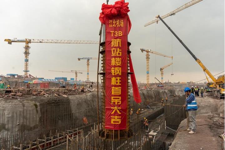 重慶機場T3B航站樓首節鋼柱順利吊裝