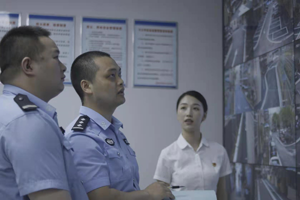 民警在監控室查看農村道路監控運行情況。黃山攝