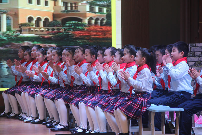 本次活動主題是“追革命之光,做文明少年”。其中,四(9)中隊以《富強》為題,從“情憶巴國渝水美”“禮贊國際新都妙”“互聯網改變生活”三部分,以合唱、舞蹈、演講、誦讀、情景劇等鮮活生動的方式,點贊魅力重慶,展翅雛鷹少年,全校師生和家長在線觀看了展示直播。