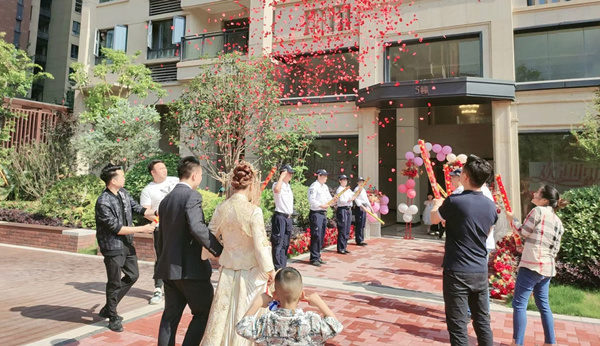 5月,自在城迎來了一場甜蜜的婚禮。物業工作人員知悉婚禮細節后,立刻幫忙鋪紅毯、搭建氣球拱門、控制車位、維持現場秩序等,與新人一起迎接這一重要時刻。