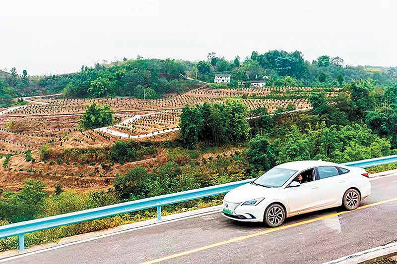 奔馳在鄉間的新能源汽車。(受訪者供圖)