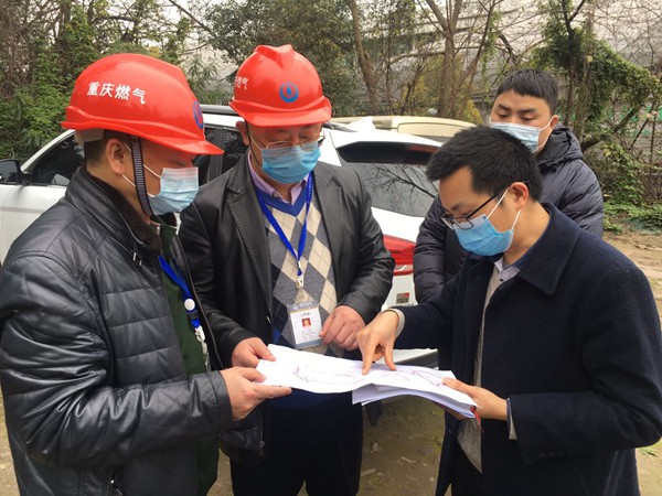 重慶燃氣管道維護分公司和施工方確認遷改流程。重慶燃氣集團供圖