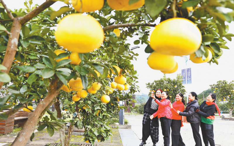 11月12日,梁平區萬石耕春·梁平柚海廣場,游人在柚子樹前拍照、游玩。當日,第四屆長江三峽(梁平)國際柚博會在“中國名柚之鄉”梁平區開幕,將持續至12月31日。重慶日報記者獲悉,開幕式上,梁平柚線上、線下采購簽約總額突破6500萬元。