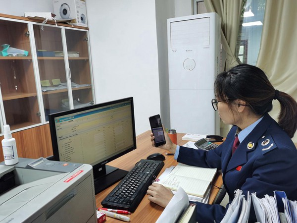 圖為稅務人員視頻輔導納稅人申報享受緩稅。段緣攝