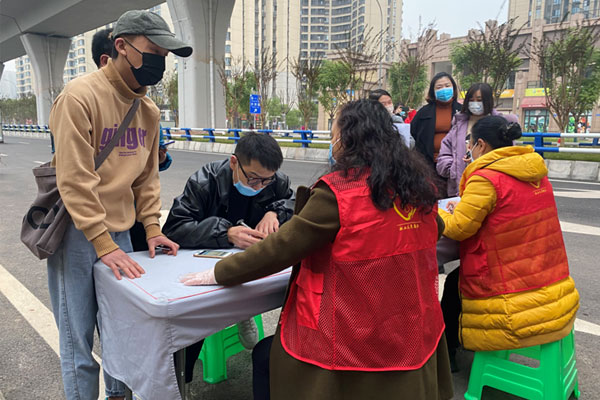 “為了保障大家的安全,我們都要求大家按照一米的距離分開坐,而且考慮到現在天氣比較冷,我們還為來參加無償獻血的人提供了熱水!鄙称簤螀^石井坡街道民政和社區事務辦負責人李靜說。