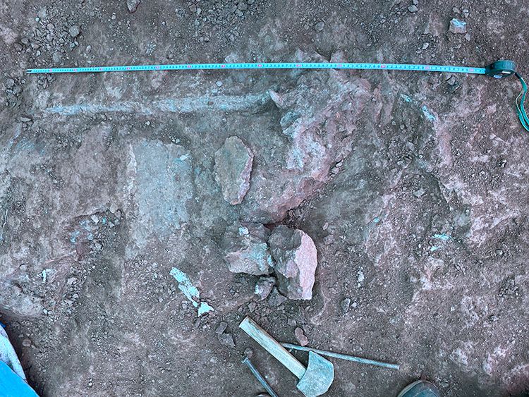 專家根據骨骼化石形態及埋藏位置,初步推測化石點屬于單個體埋藏,相當于只有一條恐龍被埋在這里,多條埋藏的可能性極小。目前已對化石進行探明和保護,化石均保存在原地。若下步發現存在更多的化石,將上報自然資源部,申請正式的發掘工作。
