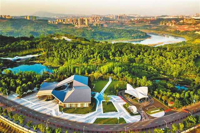 在長嘉匯廣場,一座形如草書“起”字的建筑,在藍天白云下分外顯眼。重慶市規劃展覽館新館造型,寓意起風景、起征程的奮起之義。