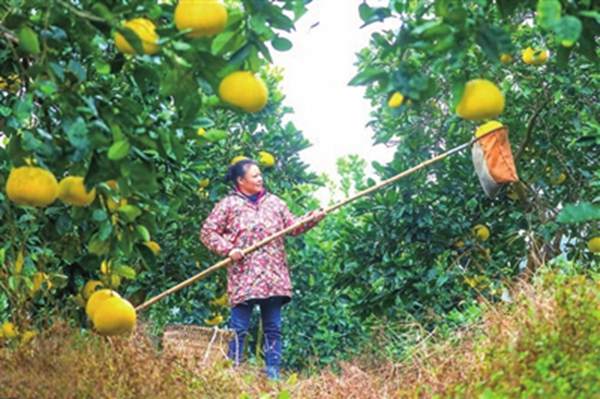 村民采摘柚子。熊偉攝