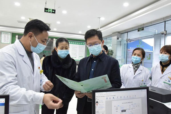 調研組在璧城街道衛生院查看“健康管理站”運行情況。璧山區衛生健康委供圖