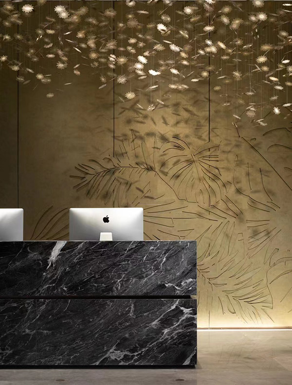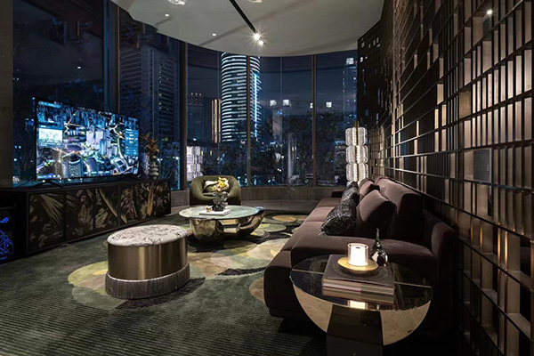在產品設計上,香港置地啟元采用藝術建筑手法,采用了小產量、天然藝術紋路而珍貴的“奢石”作為原材料,空間大量采用對工藝要求更高的曲面設計,在空間中呈現柔和的韻律感,打造觀音橋之上鮮明而謙和的藝術建筑形象;在歸家動線上設置藝術大廳,入戶以源自勞斯萊斯的星空頂為靈感,創造獨特歸家體驗;架空層空間采用酒店式藝術空間設計,元會所、社區主題模塊園林等,營造藝術化圈層交流環境。值得一提的是,香港置地啟元也是重慶第一個在住宅產品中配備了音樂廳會所,為業主提供更具儀式感的接待、會客活動。