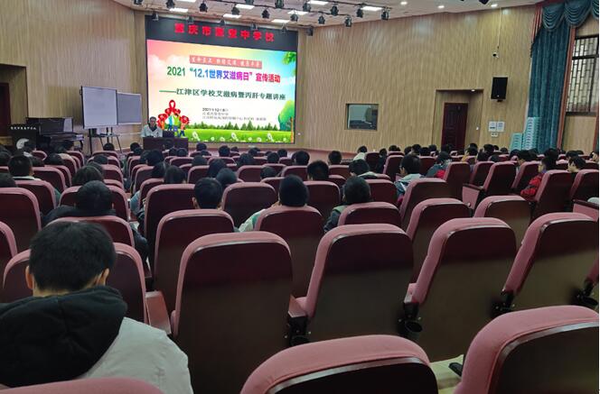 工作人員通過主題宣講、文藝演出、有獎競答、禮品發放等多種形式,與現場參與群眾進行實時互動,及時準確的解答現場參與群眾的疑問和誤解,有效地普及艾滋病、丙肝防治知識。與此同時,工作人員還在聚奎中學舉辦了一場學校艾滋病暨丙肝專題講座,近200名師生參與本次講座。講座上,江津區疾控中心性結科專家為師生們介紹了艾滋病丙肝防治背景、基本知識和流行形勢,分析了青年學生群體感染艾滋病的高危因素和預防措施,倡導大家樹立 “每個人是自己健康第一責任人”理念,并爭做艾滋病宣傳志愿者,以實際行動向身邊的人傳播艾滋病預防知識。