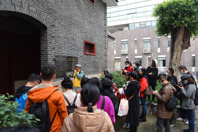 活動中,在導游童思斯帶領下,從南濱路國家級文化產業示范園區到故宮南遷紀念館結束,通過盤點產業園區內的商家,引入特色互動體驗,倡導和培養游客的體驗式生活方式,將消費變為一種周末的旅行新形式,讓大家感知到文物建筑背后的故事,以及開埠文化對重慶的影響。
