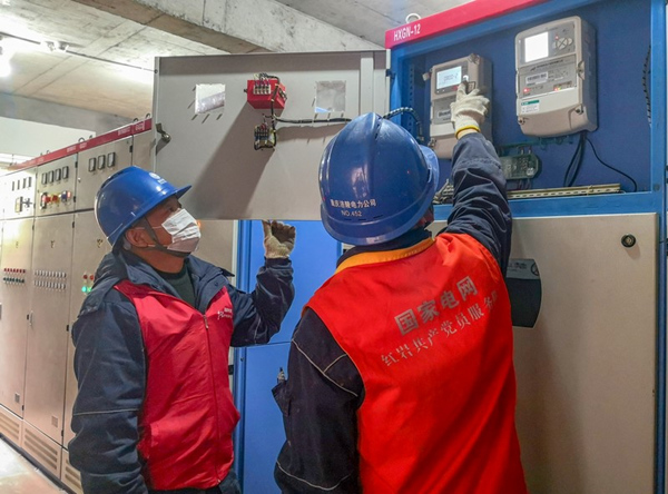 劉軍(左一)和同事在檢查。國網重慶市電力公司供圖電表