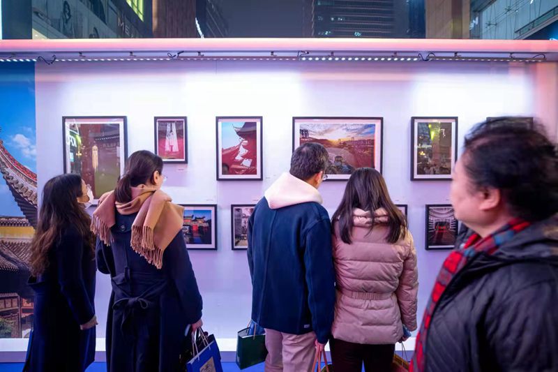 市民在解放碑步行街參觀攝影大賽佳作展。何超攝