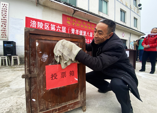 人民網重慶12月11日電 12月10日,是涪陵區第六屆人大代表選舉的日子。早上8點多鐘,涪陵區青羊鎮迎龍村投票站現場,迎龍村黨支部副書記楊永貴認真地用毛巾擦拭投票箱,為投票做準備。