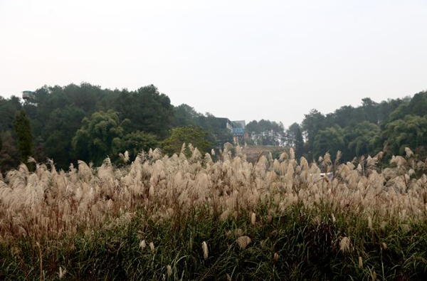 在涪陵區藺市街道,坐美心紅酒小鎮景區觀光索道3號線登頂泡桐村山頂,向后山走不到200米,山頭和田坎上遍野都是芒草花,蒼茫如雪。
