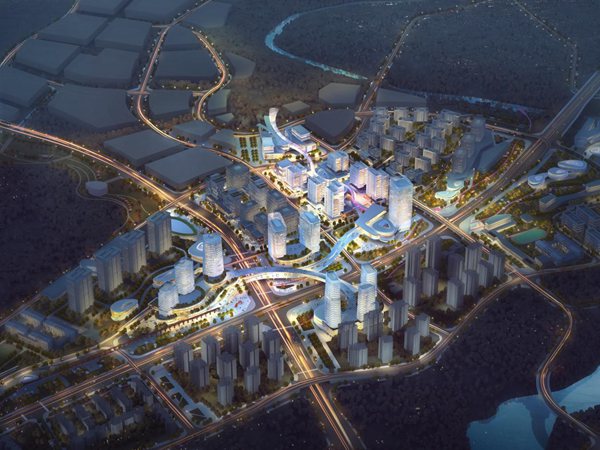 空間上構建4公里長的綠廊慢行系統,形成聚集各種公共設施的“智慧中樞”。在三線交匯樞紐上以“聚能云環”,串聯包含大數據企業總部、五星級酒店、萬物互聯科技館等,打造 “創智中樞城”。