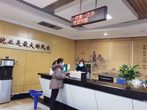人民網重慶12月15日電 近日,家住渝北區的市民譚女士到龍山街道公共服務中心咨詢失業后如何領取失業金相關事宜!耙患乱淮无k”窗口工作人員一次性告知譚女士失業登記、失業金申請等事項辦理詳細,并引導她在短短10分鐘就完成失業登記、失業金申請、就業援助對象認定等事項。不需要身份證之外的任何資料,只待后臺審核通過,她即可按月領取失業金,享受醫療保險待遇。