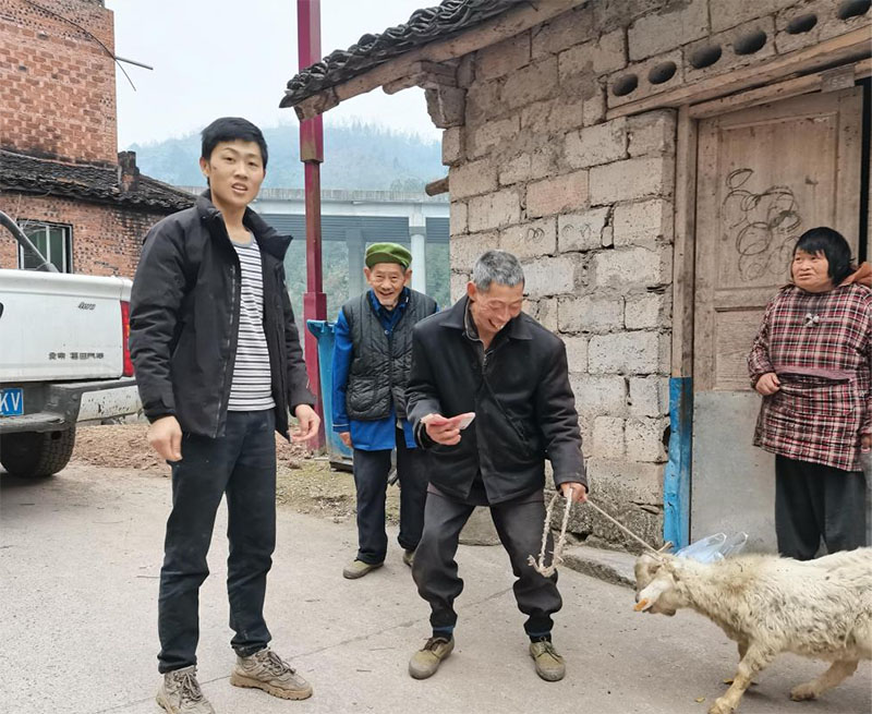 村干部為村民送去分紅和羊。民生銀行重慶分行供圖