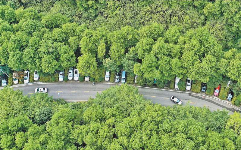 九月十二日,江北區鐵山坪森林公園,前來游玩的市民將汽車停在生態停車位上。記者 崔力 攝\視覺重慶