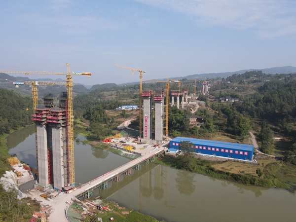 大溪河特大橋位于重慶市南川區鳴玉鎮四中村及峰巖鄉峰勝村交界處,橋梁橫跨大溪河。該橋為整體式橋梁,采用雙向六車道高速公路標準建設,設計速度100公里每小時,橋長1126米。項目集高墩、大跨于一身,工期緊、任務重,是全線重難點控制性工程之一。
