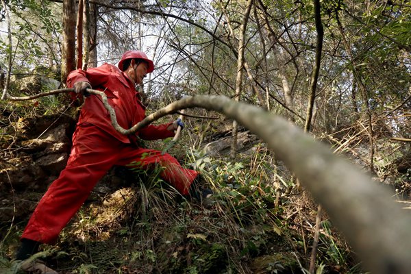 鉆井員工手拉藤蔓,斬棘探路。東方物探西南分公司鉆井工程中心供圖