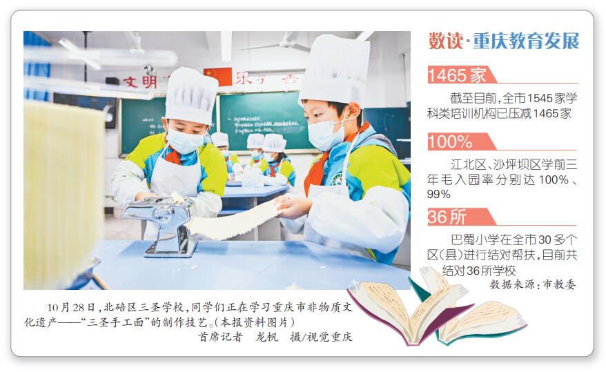 今年是“十四五”開局之年,重慶通過實施各種舉措,持續推進教育優質均衡發展,包括改革教學方式,通過“雙減”提質增效;持續拓展普惠性學前教育資源;通過集團化辦學模式,輸出優質教育理念和教學資源等,讓不同階段教育更加公平、優質,推進形成多元參與、共建共享的現代教育治理體系。