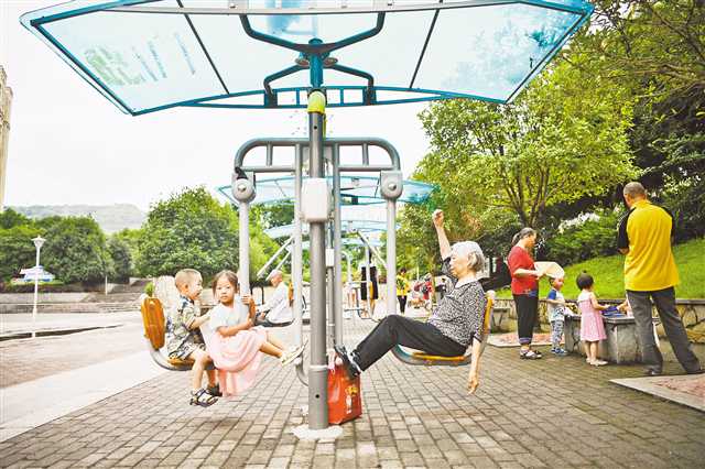 巴南區蓮花街道云篆山水公租房廣場,市民在智能健身器材上鍛煉。(本報資料圖片)記者 謝智強 攝/視覺重慶