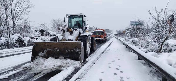 人民網重慶12月28日電 12月25日夜間,包茂高速酉陽段迎來降雪,溫度低至零下5度,積雪20-25CM厚。重慶高速集團通力公司立即啟動抗冰除雪應急預案,轄區酉陽養護站全員出動,調派6臺融雪撒布車、5臺鏟車、2臺鏟雪車執行除雪任務,積極協助高速交巡警對轄區道路進行交通管制,周邊武隆、彭水、黔江養護站緊急派人派設備支援,全力應對本次冰雪天氣。