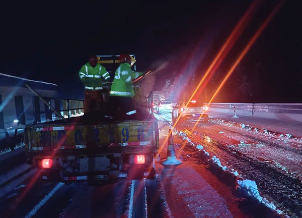 截至12月27日12時,近150名養護工人和技術管理人員,連續奮戰37小時,撒布融雪劑160余噸。目前,酉陽段雙向車道已恢復交通,養護站將持續關注天氣狀況,人員、設備、材料24小時備勤待命,確保道路安全暢通。(胡虹、張艷、冷文波)