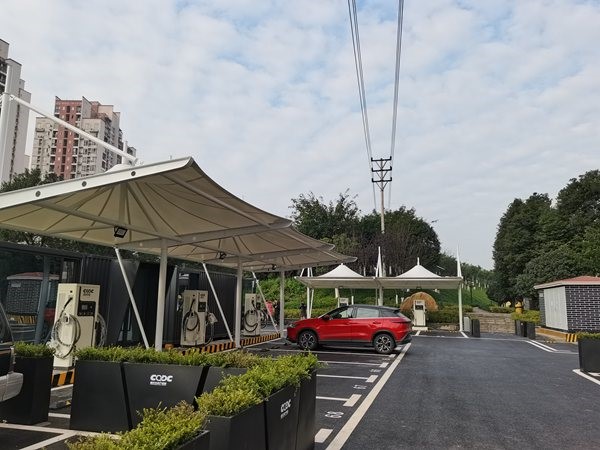 天宮殿充電站,位于兩江新區華園路135號。占地面積412平方米,場內設置14個充電車位(含4個小鵬汽車超充專用位)。