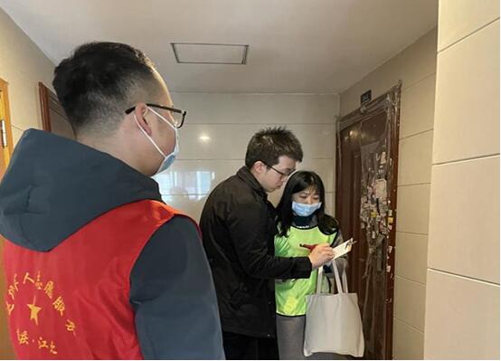 志愿者們分組對社區住戶進行上門宣傳和問卷調查,發放垃圾分類指導手冊,告知居民“撤桶并點”、“定時定點”等注意事項。