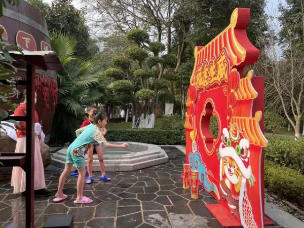 統景溫泉適時推出“頭湯送!薄伴_柜有禮”“投壺有!钡然菝窕顒,吸引了眾多市內外游客前來泡湯。