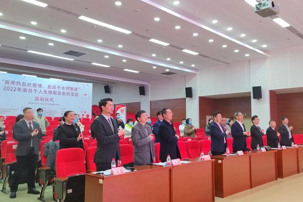 生命呼喚血液,愛心需要奉獻。1月5日,由重慶市兩岸同胞獻血聯盟主辦,重慶醫科大學附屬第三醫院、重慶市臺灣同胞投資企業協會、重慶渝臺兒童關懷協會、重慶渝臺茶文化交流協會承辦的“兩岸熱血抗疫情、血濃于水同胞親”2022 年渝臺千人無償獻血系列活動啟動儀式在重慶醫科大學附屬第三醫院舉行。
