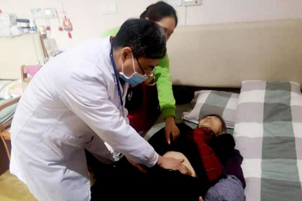 醫務人員到頤養中心查房、為老人檢查身體。重慶市第十三人民醫院供圖