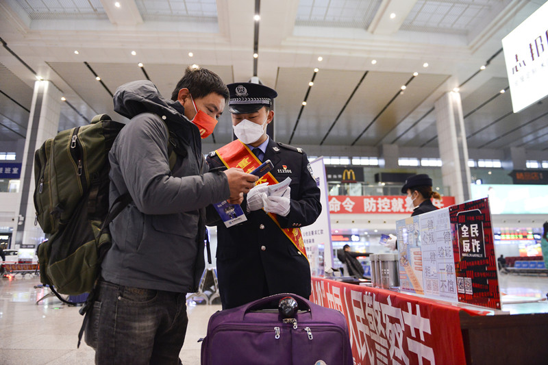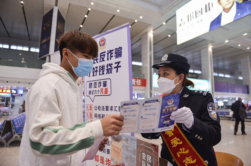 人民網重慶1月10日電 隨著2022年春運的臨近,重慶北站的出行客流逐漸上升。為進一步提升為民服務水平,強化電信網絡詐騙宣傳力度,最大限度保護人民群眾財產安全,1月10日,重慶鐵路公安處重慶北車站派出所緊扣慶祝第二屆人民警察節系列活動、“我為群眾辦實事”實踐活動,以“聽得懂、防得住、有效果”為目標持續發力,組織民警走進站區、商鋪,通過高頻率、全方位、多舉措的反詐宣傳,切實提高廣大群眾防騙意識。