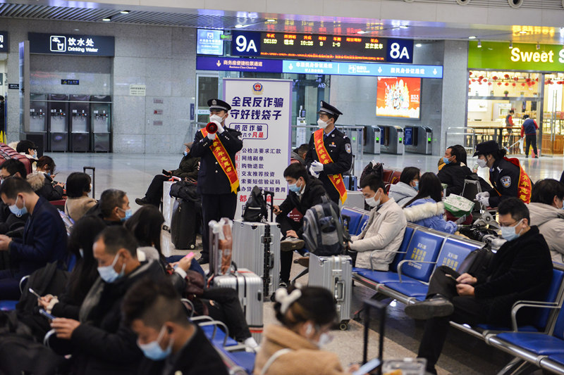 民警在候車廳開展反電信網絡詐騙集中宣傳。重慶鐵路公安處供圖