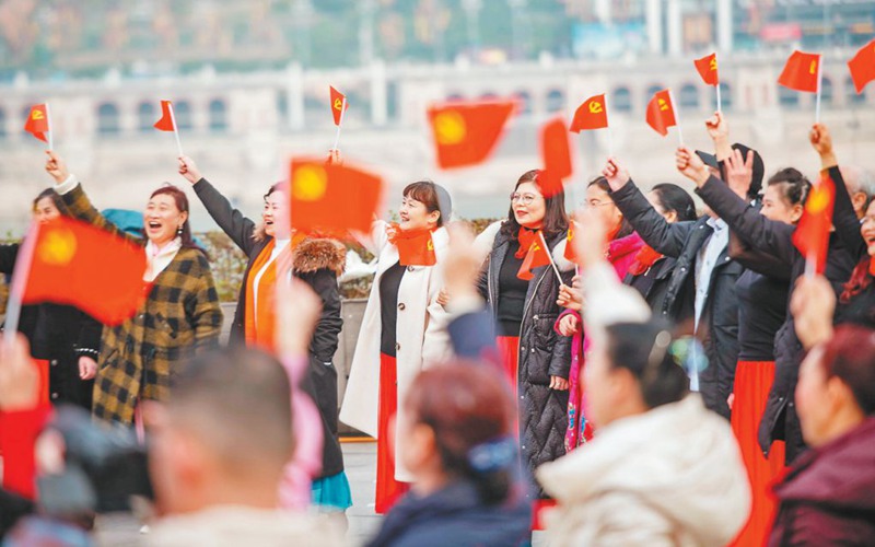 “偉大的中國共產黨,風華正茂,山高水長……”1月10日、11日,我市多地舉行歌曲《領航》主題快閃活動。人們來到紅巖魂廣場、磁器口古鎮、重慶大劇院等重慶標志性景點,演唱歌曲《領航》,表達著對黨和國家的深厚情感。