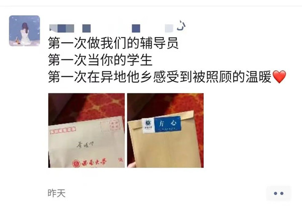 作為“00后”的大學生,不少同學表示,這是第一次收到親筆信,他們在朋友圈里刷屏感嘆:“誰能拒絕一個親筆給全年級200多人寫信+定制書簽的輔導員,這樣的輔導員誰不愛呢?”